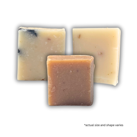Please note: These sample bars are cut from full-size soaps that didn’t quite meet our standards for appearance. They might look a little uneven, oddly shaped, or rough around the edges—but they’re just as high-quality and effective as ever.